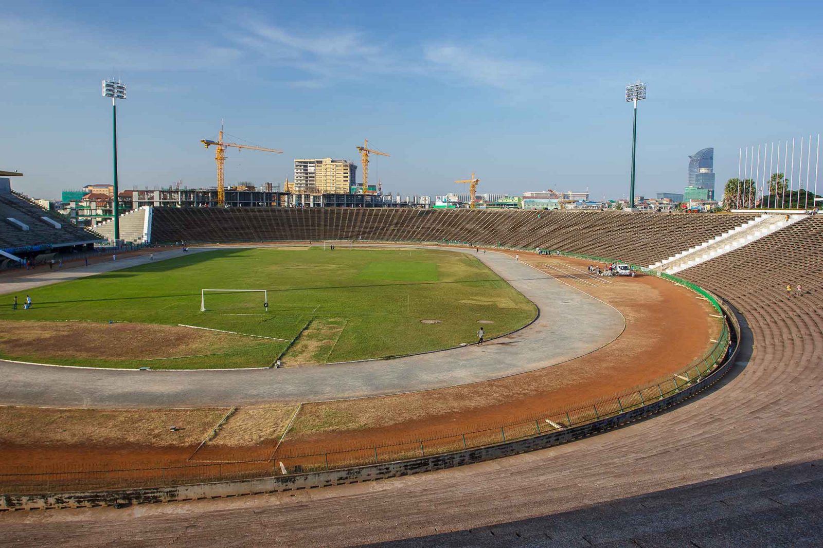 Le stade olympique de Phnom Penh est le rendez vous, chaque soir, de très nombreux khmers désirant prendre du bon temps et satisfaire leur bien-être. Autour du terrain, vous trouverez de nombreux joggeurs slalomant au travers des joueurs de badminton. En haut des gradins, des centaines de passionnés suivent le rythme de leur professeur d’aérobic, de danse khmère traditionnelle ou moderne. Une autre manière d’utiliser ce genre d’enceinte et un arrêt intéressant pour le voyageur à Phnom Penh.